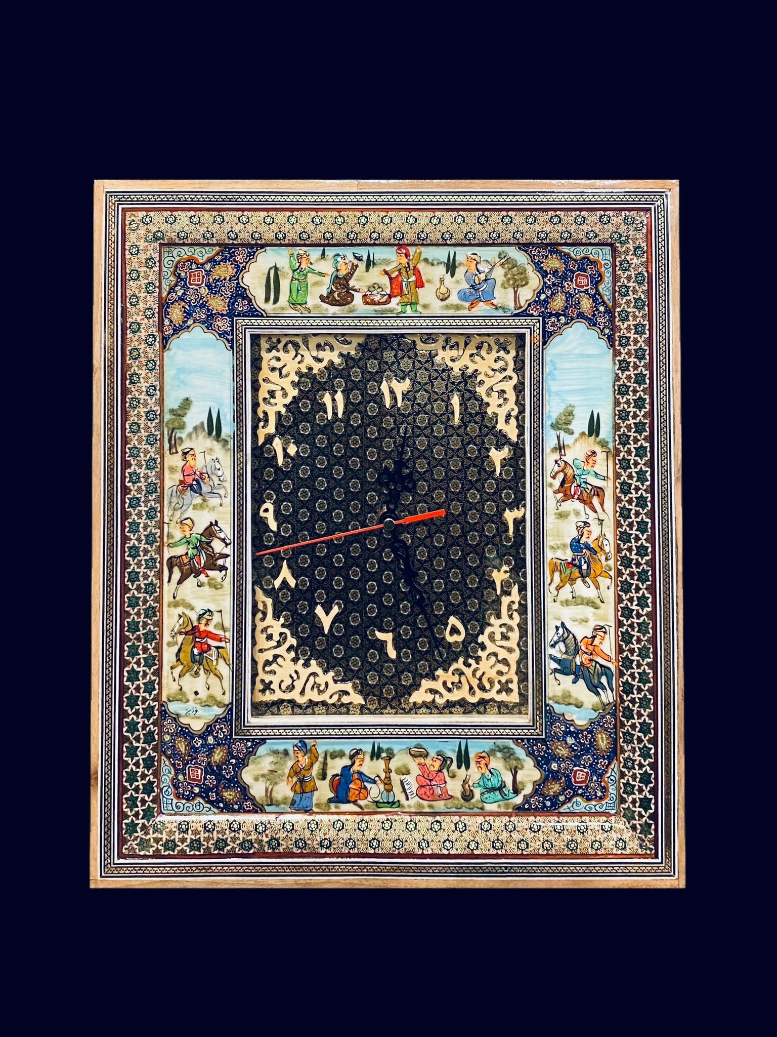 Handmade Inlaid & Enamel Khatam Kari and Mina Kari Clocks Wall Hanging Wall Art