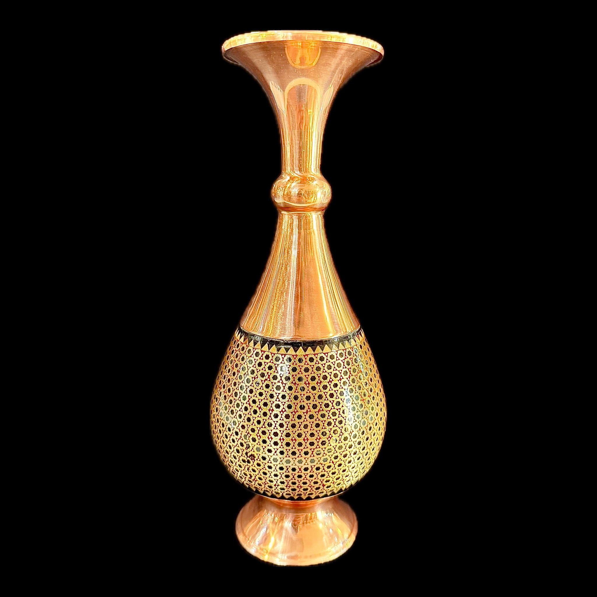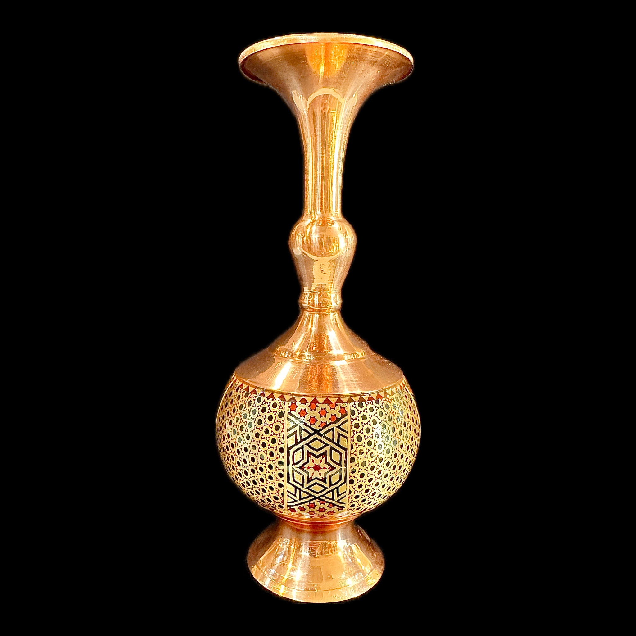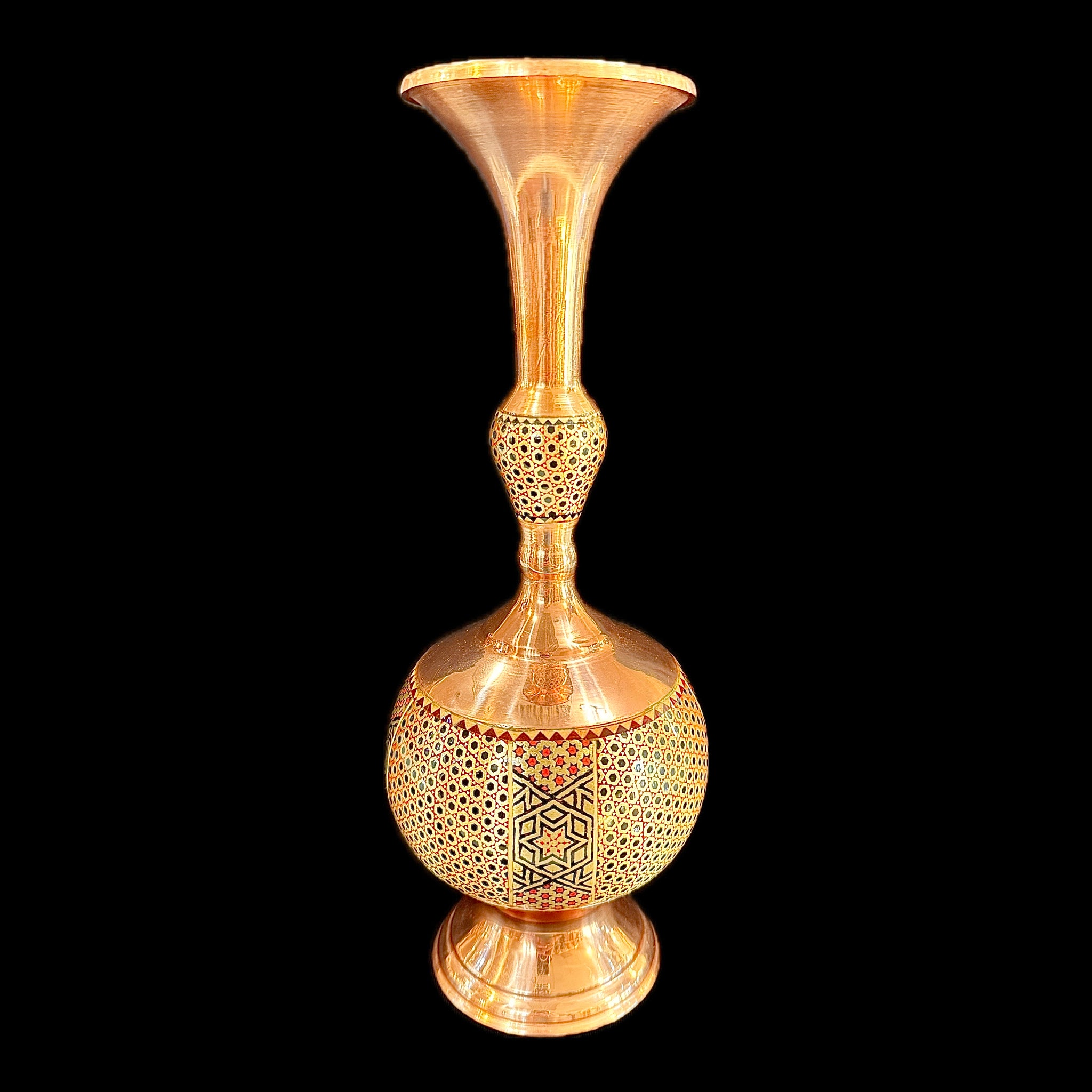 Handmade Inlaid On Copper Khatam Kari Vases available in different designs & sizes.
