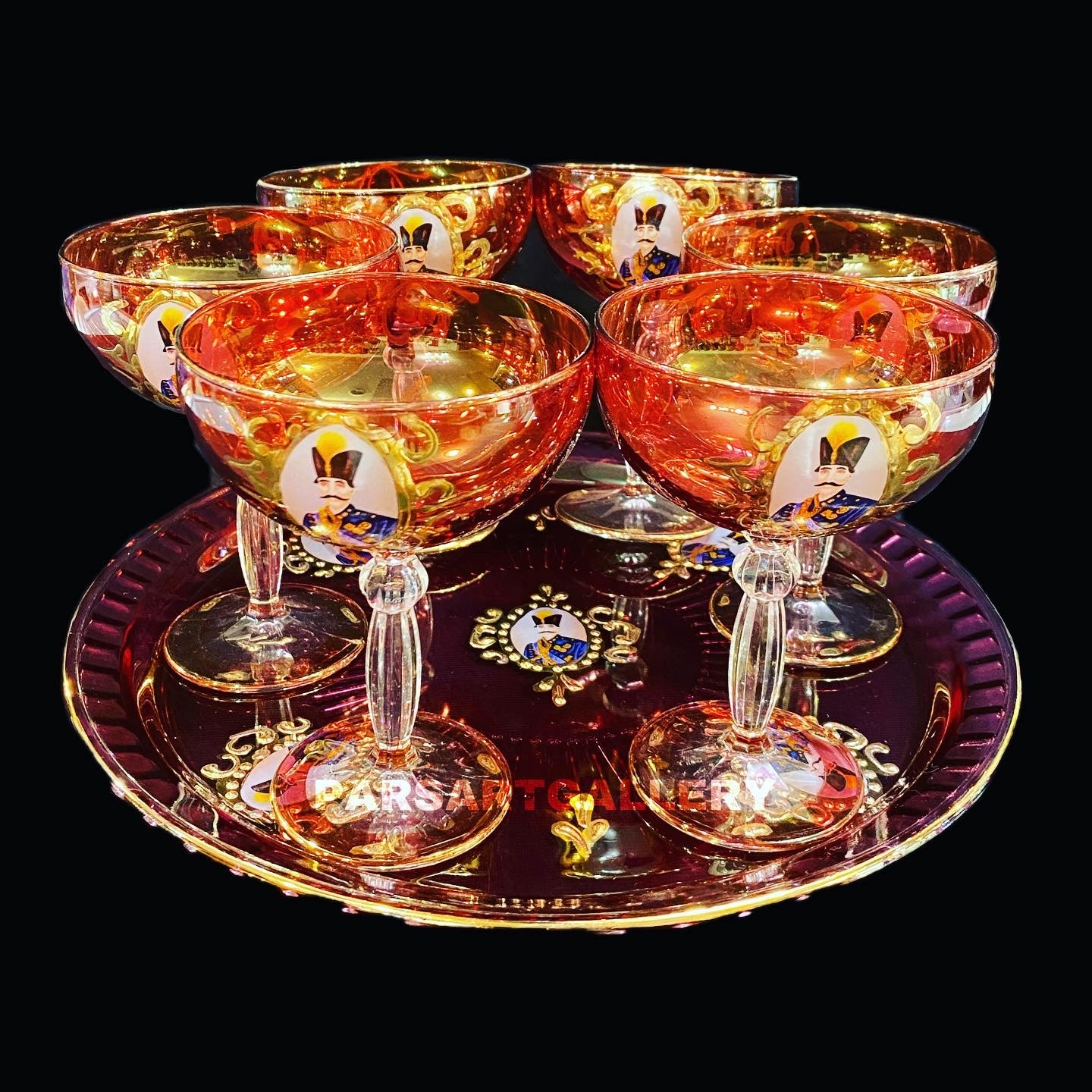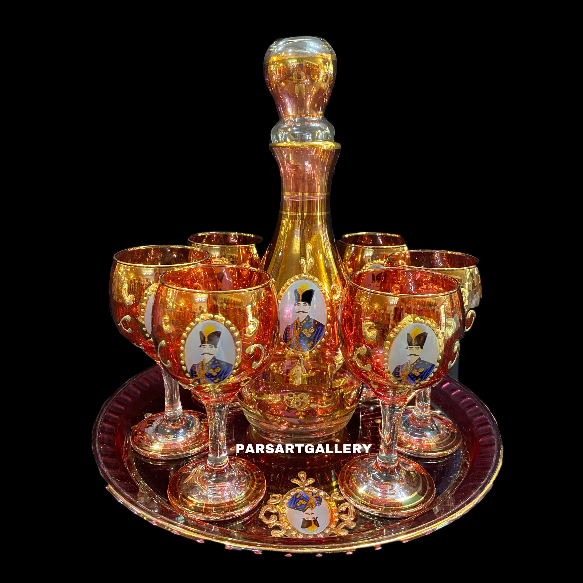 Set of Shah Abbasi Glasses, Tray & Bottle available in different designs and sizes.