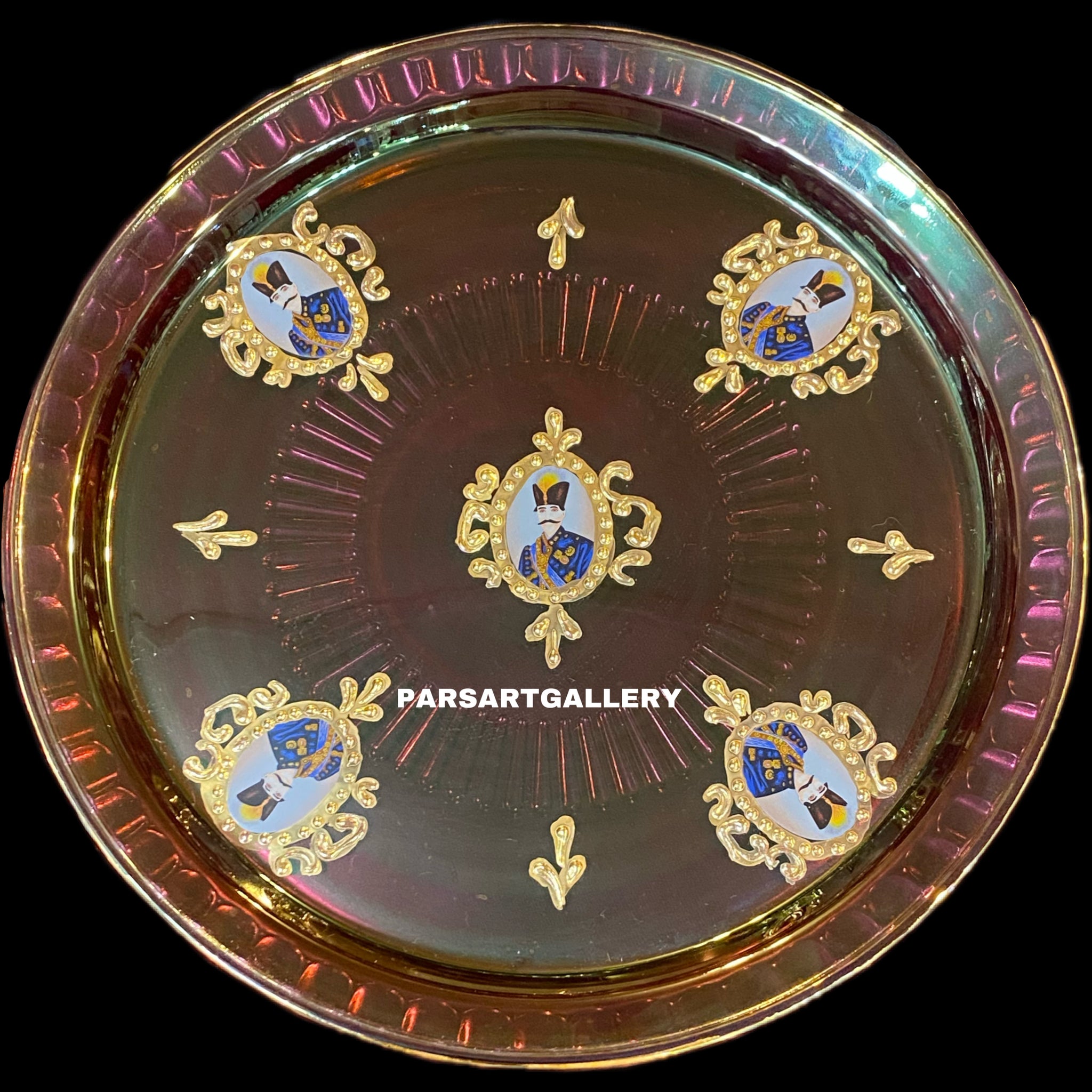 4th-5th picture: The height of glass is 6 inches (15 cm) and the diameter is 4 inches (10 cm). The diameter of tray is 12.5 inches (32 cm).