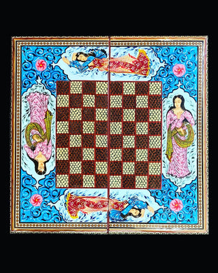 Handmade Inlaid Khatam Kari Backgammon, Chess & Checkers Board